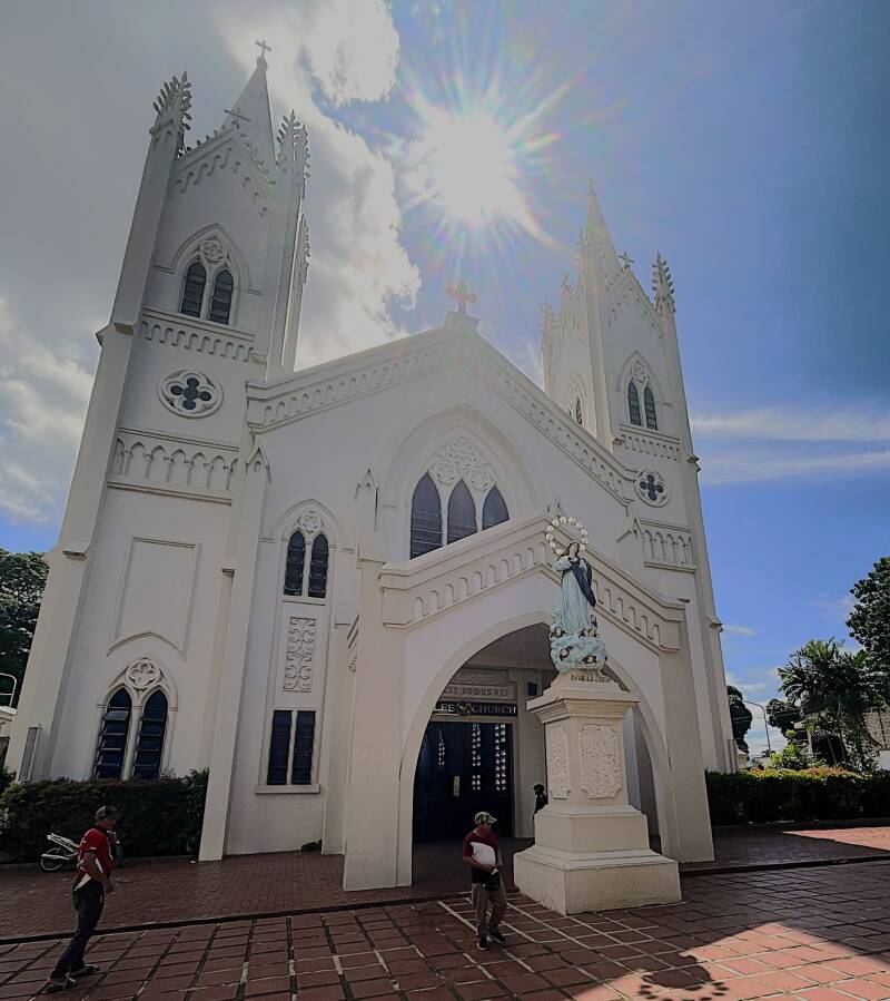 Continuing to navigate through the Philippines, our next stop was Puerto Princesa. Puerto Princesa is the capital city of Palawan Province, located roughly in the center of the long, narrow island of Palawan in the Philippines, with a population of 300,000. As usual, we start with the welcoming band and dancers on the pier. Then, after disembarking and walking out of the port, we had a gauntlet of natives trying to hustle us for a ride or tour. We had some people following us for 2 blocks before they gave up. Regardless, we took a nice stroll through the city and the marina. First, the outside and inside of the cathedral. Then a view of the marina and bay. Then I spied some high-tech Filipino flotation devices.