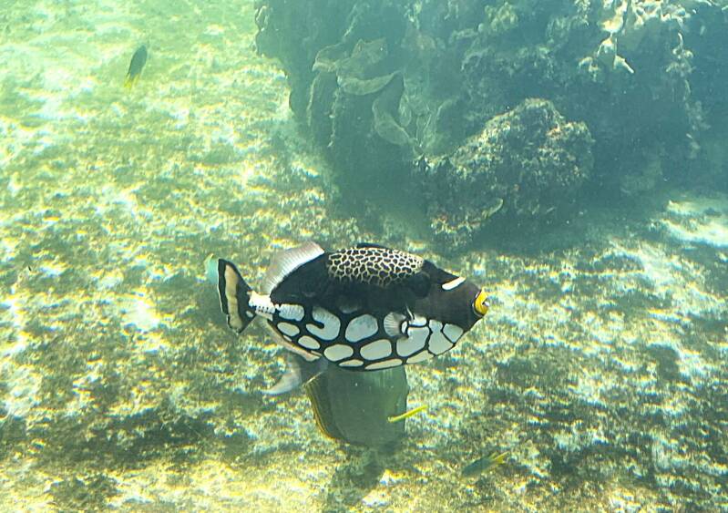 The purpose of our trip to Manado was to go snorkeling the next day. After a very twisty road trip, we arrived at a rather decrepit street with a small marina. While it was home to a couple of large Indonesian Coast Guard cutters, we boarded a little homemade wooden boat for a trip over to Lihaga Island for our snorkeling adventure. Where we saw hundreds of fish in Palau, we saw thousands of fish off the beach of Lihaga Island. I won't bore you with more tropical fish pictures, BUT if you really want more, just reach out to Kathie, she's building a database of them :-). Here we are heading to the marina, here's the coast guard cutters, and here's Lihaga Island in the distance - look for the white sand beach.