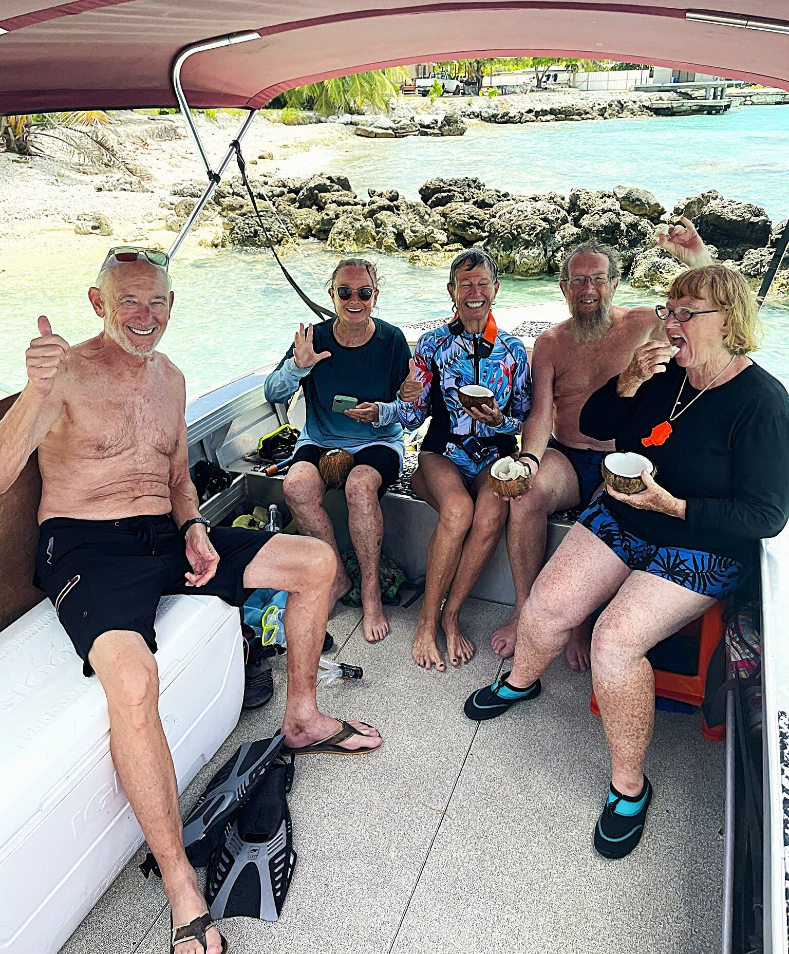 The trip was topped off when Jeremy pulled up to a small beach to allow one more shot at snorkeling while he went ashore in search of coconuts, which are in abundance everywhere you go in the South Pacific. After dehusking and cracking them open, we enjoyed the coconut water and meat.