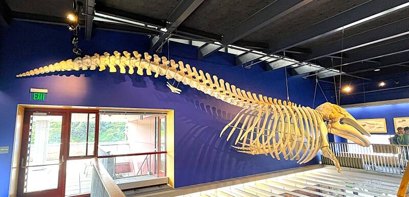 Our final port in Alaska was a one day visit to Kodiak Island and the city of Kodiak. We visited a National Wildlife Refuge museum where we were treated to a real Grey Whale skeleton. Coincidentally the woman that discovered the beached whale was at the museum and told us the story of how the skeleton ended up in the museum. She found it on the beach in May 2000. From there and with some heavy equipment they moved it away from the beach, dug a whole and let the whale decompose for the next four years. Between 2004 and 2007 they went about the task of uncovering the carcass, cleaning it, transporting the pieces parts to the museum and then assembling them. Here's a front and rear view of the finished product.