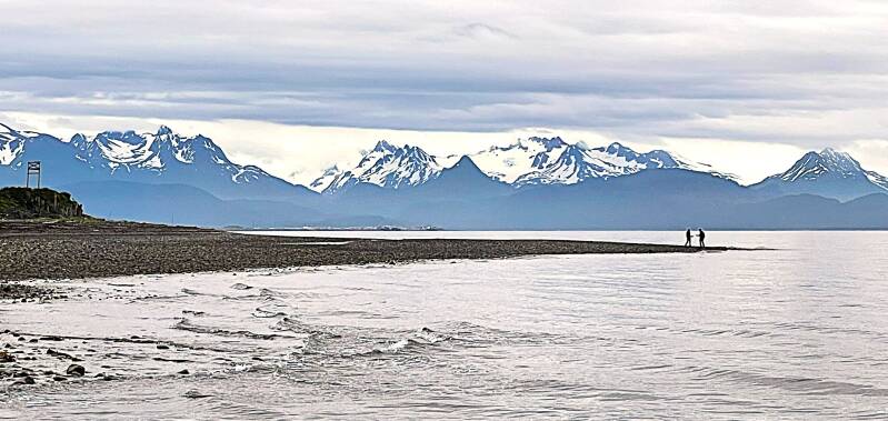 Well it was now time to put away our hiking boots and sticks as we headed back to the San Francisco airport for our flight to Anchorage. Because of some last minute changes to our ship's itinerary we had to cancel our bus trip from Anchorage to Seward AK and instead of a one hour trip after a five hour flight, we got on a bus to Homer AK which was five hours long. Upon arriving in Homer we were picked up by our B&B host, Michael, and driven out of town to their facility Homerhome. We had to stay there for two nights until we could meet up with our ship. Here's a couple of pictures from the Homerhome backyard - mountains and Alaskan Sand Hill cranes. The following day we did a little exploring in town where we visited Bishop Beach which is at the beginning of Cook Inlet. Cook Inlet runs for 180 miles and is the body of water our ship sailed in from Homer to Anchorage.